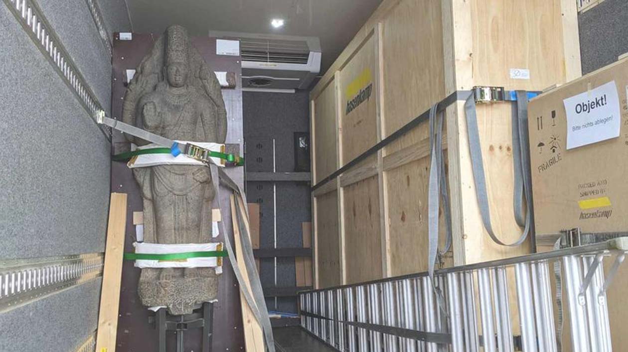 The famous statue of the Hindu god Vishnu from the collection of the Museum für Asiatische Kunst was recently moved to the Humboldt Forum from the Dahlem district of Berlin, where the museum's storage depot will continue to be located.